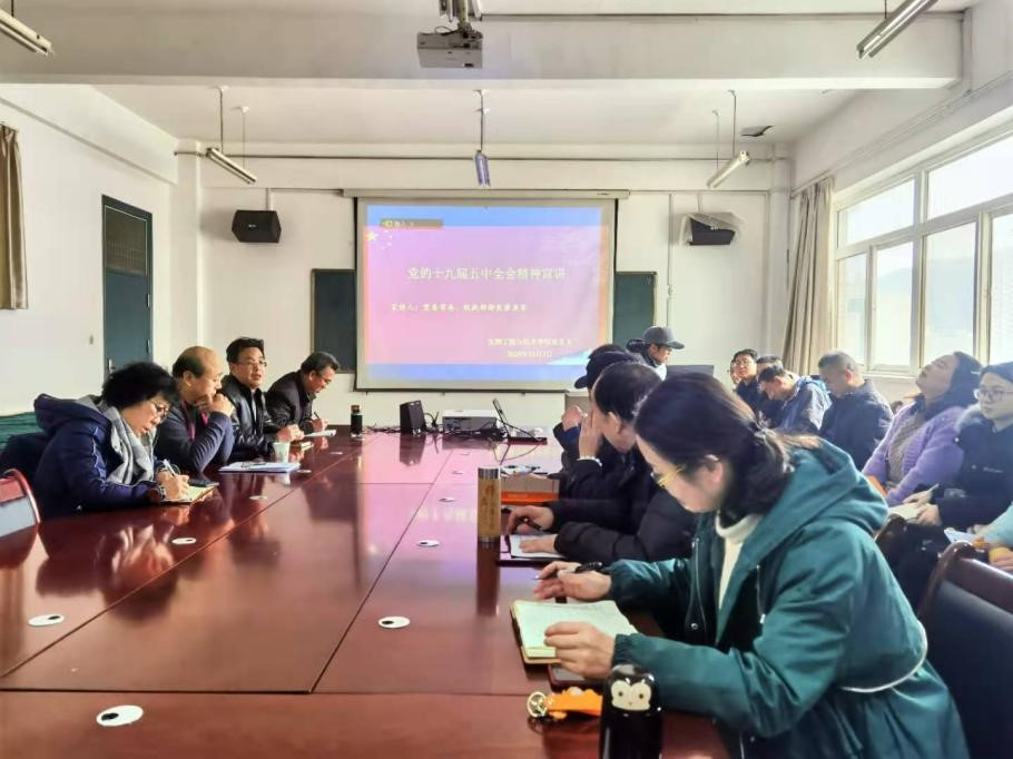 12月3日下午,365best体育官网入口在414会议室召开全体教职工大会,邀请校党委常委、统战部部长崔亚军作学习贯彻党的十九届五中全会精神宣讲报告,党总支书记马纲主持会议。
