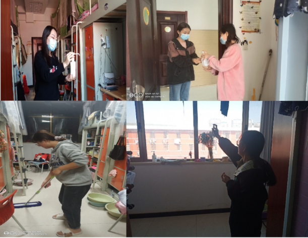 会后,全班同学积极响应学校的有关通知和班会会议精神,第一时间对每个宿舍进行消毒和卫生清洁工作。在班主任和班长张妙银的带领下,全班同学每天按时健康打卡,早上8:00按时汇报体温。同时,每位同学每天刷新健康码,公知在班级群里,做到不瞒报,不谎报,如有异常,立即向学院上报。