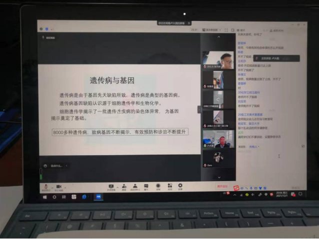 卢大儒教授做了题为“基因与健康”的辅导报告。卢教授从遗传物质的组成及其功能,基因工程技术在疾病检测、疾病精准治疗、生物育种、疫苗研发、预防新冠肺炎等方面的应用以及基因工程新技术研究进展和生物安全与伦理等方面的问题进行了详细解读。报告涉猎面广,案例生动,逻辑严密,前瞻性强,为我们全面准确描绘了一个丰富多彩的基因世界,展望了未来基因工程在促进物种改良、人类健康发展等方面的美好前景,在全校师生中引起强烈的反响。在互动交流环节,我校师生就基因在疾病靶向治疗、基因工程与伦理法治、考研等问题与卢大儒教授进行了热烈讨论。