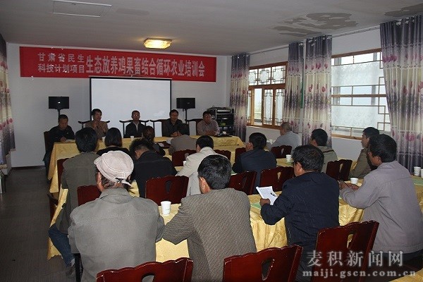 为了深入推进甘肃省民生科技推广项目——麦积区生态放养土鸡HACCP项目有序开展,进一步提高广大养殖户的饲养管理水平,9月27日,麦积区畜牧兽医局联合365best体育官网入口在甘泉镇羲湟缘养殖农民专业社开展了生态放养鸡果畜结合循环农业培训班。区政协主席杨续祥、区委副书记张麟出席开班仪式。